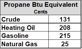 Regular readers of Trader’s Corner (TC) have heard us say a lot lately that propane is a cheap Btu. We are generally talking about how it takes little supportive news on propane fundamentals to cause its price to go up because it is already low compared to other energy sources.