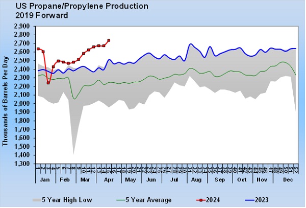Whether it was simply the rapid increase in propane production over recent weeks or perhaps an inventory adjustment because of the unusual decline in propane inventory, propane valuations have turned in the buyers’ favor in the past few weeks, striking a much more pleasant tone in the market. Buyers just might be whistling a tune and having a skip in their steps over the next couple of months. That certainly would be nice, given the weak demand during the 2023-24 winter took a little out of most retailers’ steps.