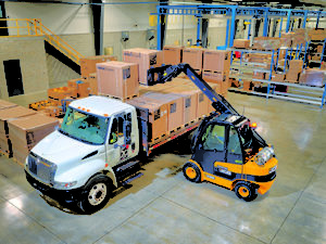 The telescopic boom on the Teletruk allows loading and unloading tasks to be completed within half the space required by a conventional forklift, the company says. And the forward reach allows the operator to unload an 8-ft.-wide truck trailer from one side, reducing forklift movements, saving time and fuel, and minimizing hazards for others around the work site.