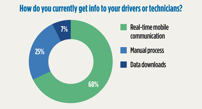 Of the respondents surveyed by Cargas, 68 percent use real-time mobile communication to reach drivers and technicians, a higher percentage than reported last year. Manual processes, such as calling the driver, are less favored by about 11 percent compared to last year.