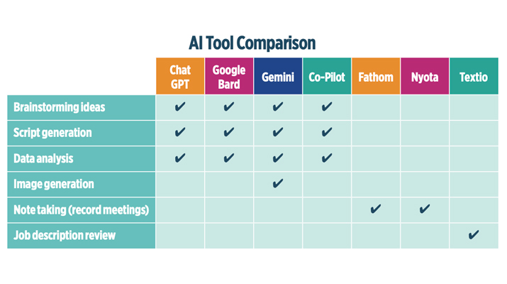 - Choose the right tool: Select AI platforms that match your objectives, whether it’s automating routine tasks or analyzing complex data. See the AI Tool Comparison chart to find a tool that matches your objectives.