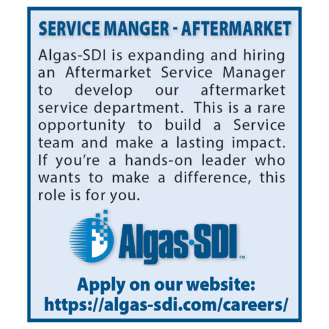 Algas-SDI is expanding and hiring an Aftermarket Service Manager to develop our aftermarket service department. This is a rare opportunity to build a Service team and make a lasting impact. If you’re a hands-on leader who wants to make a difference, this role is for you.