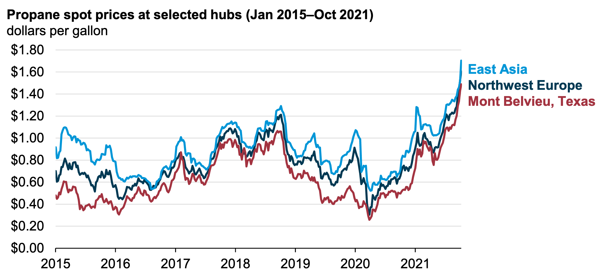 In the U.S., propane prices rose to nearly 150 cents a gallon earlier this year as inventories sank to five-year lows. Clearly, this became a tighter market than in recent years, said David Appleton, vice president for LPG at Argus Media.
