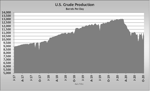 By Feb. 28, 2020, U.S. crude production hit a peak of 13.1 million bpd. The 4.139-million-bpd, 46 percent increase pushed the U.S. to the world’s top crude producer. It could be argued that this increase in crude production improved the national security position of the U.S. Production declined this year as a result of the impacts of COVID-19.