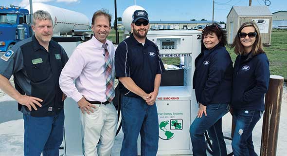 From left, C.A.F.E. Nebraska’s Lenny Hernoud, Cubby’s Sean Juett and Otte Oil & Propane’s Jake Otte, Trish Harding and Jessica Otte at an autogas station just west of Cubby’s, a convenience store. Photo courtesy of Otte Oil & Propane