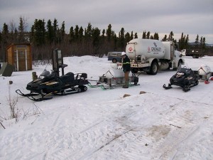 Shales listed various methods he has used to deliver propane to remote locations, such as rail, barge, snowmobile, fixed-wing aircraft and helicopter. While Shales has tried a variety of alternative delivery methods, he tried a new one this spring: He and another propane technician drove a bobtail onto a railcar that took them to their customers.