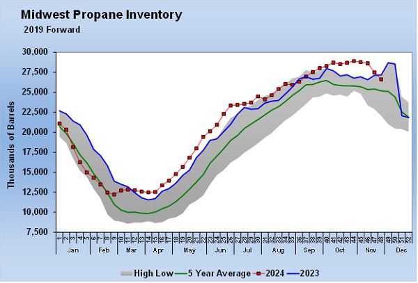 This will all sort itself out in due course. But for now, it is simply important to understand the issue and to know why the inventory comparisons between last year and this year in the Midwest might look odd. Our fear is that if we do choose this course, propane buyers could assume Midwest inventory is running below last year, compelling them to buy, when inventory is actually above last year and in excellent shape. No need to panic, to be sure.