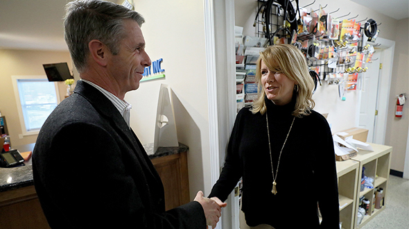 Rep. Bob Latta, R-Ohio, right, meets with propane industry members during Propane Days. (Photo by LP Gas staff)