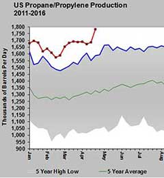 A huge jump in propane/propylene production was a key factor in the well-above-normal 2.259-million-barrel inventory build reported by…