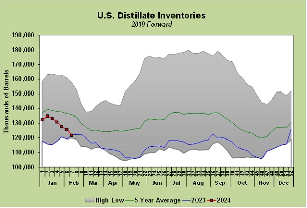 U.S. gasoline inventory had jumped above average as the winter storm slowed demand. But the rise was only temporary without normal refinery throughput to keep the pressure off inventories.
