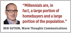 “There’s this assumption that millennials are not who our audience is, and we tend to focus our new customer acquisition efforts around people in an older category,” Gutkin says. “I think it’s because we’re not realizing that millennials are, in fact, a large portion of homebuyers and a large portion of the population and, therefore, are buying houses in our markets. Probably the biggest misconception is that’s not our audience – but actually, it is.”